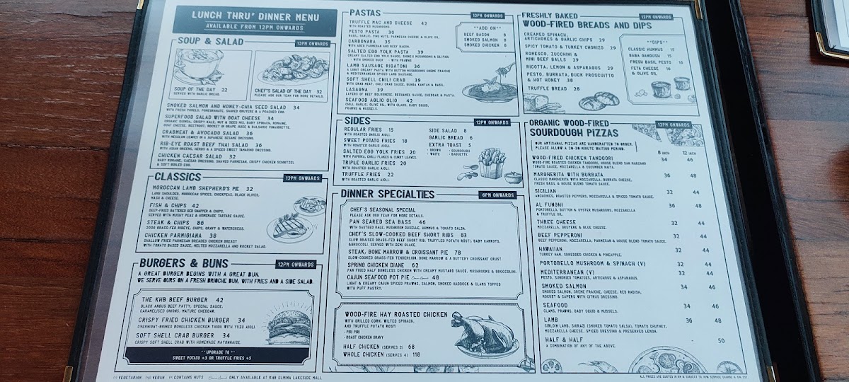 Kenny Hills Bakers, Elmina Lakeside Mall Menu
